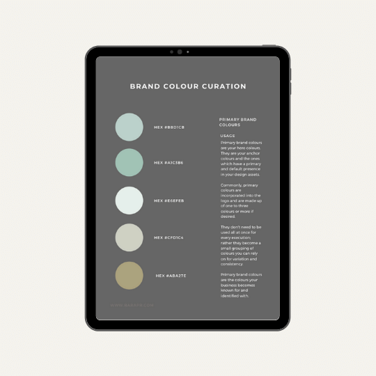 An easy to follow interactive digital PR template. This is 25 pages of professionally designed brand family discovery pages artfully design up so that you can plug and play. Curate your own mix, explore the HEX codes and develop your own hero and secondary collection to build your brand colour family and brand identity. Up-level your PR, design and brand strategy tools with this little gem.