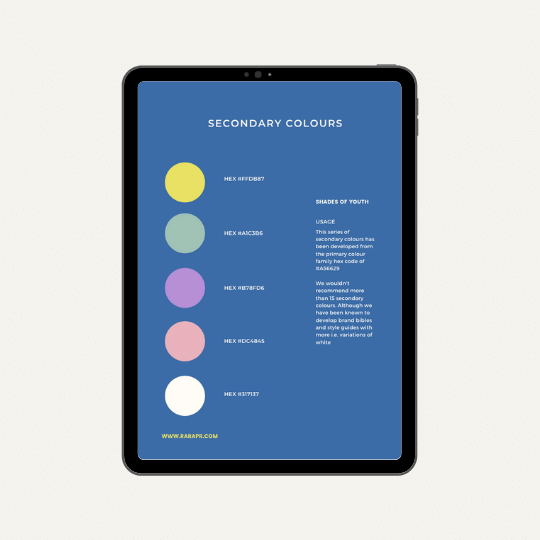 - Includes x22 brand colour family options for inspiration and guidance on how to set colours around a brand identity