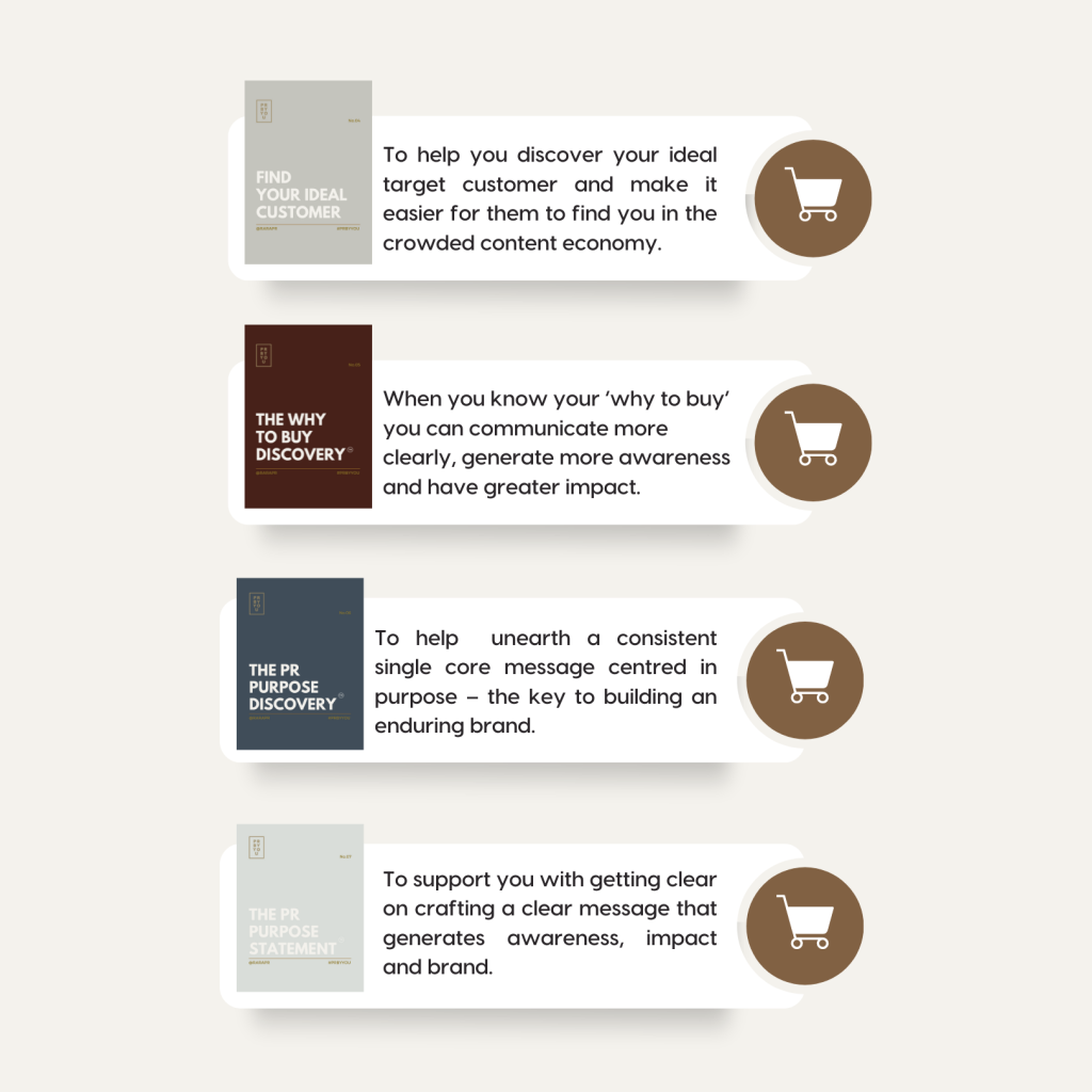 If you are interested in chatting with raraPR about a comprehensive brand audit, and PR campaign please do reach out, OR if you would prefer to DIY, we have a the perfect product support system for you, the raraPR Brand Workshop Kit.