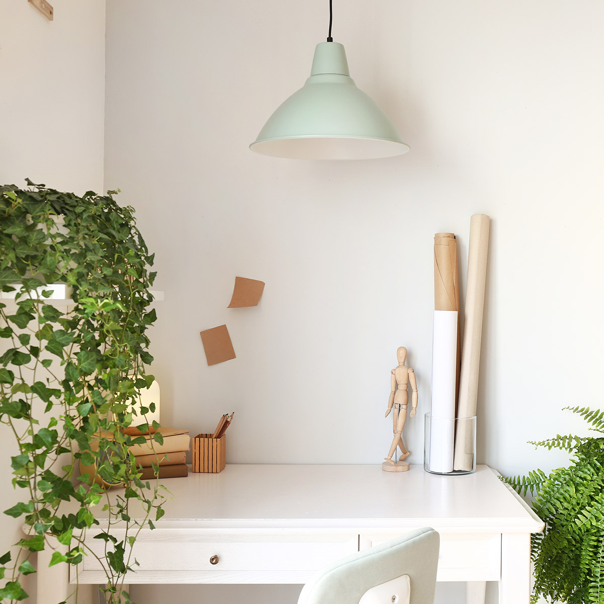 Modern stylish workplace with houseplants